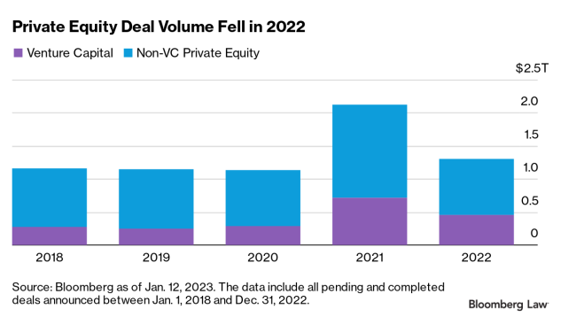 According to Bloomberg data as of Jan. 11, 2023, terminations of PE deals were few and far between—an indication that dealmakers aren’t signing agreements that don’t instill a sense of confidence.
